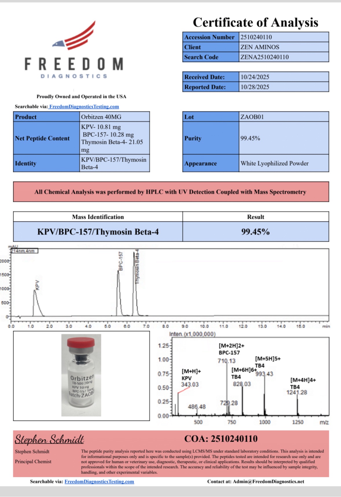 What makes the 40mg dosage size unique? The highly potent Orbitzen 40 provides an unparalleled, clinical-grade baseline for researchers looking for higher concentrations to support multiple subjects or extended titration protocols. It allows for greater flexibility in micro-dosing and ensures that the laboratory has a sustained supply of pure peptide for high-frequency metabolic mapping.